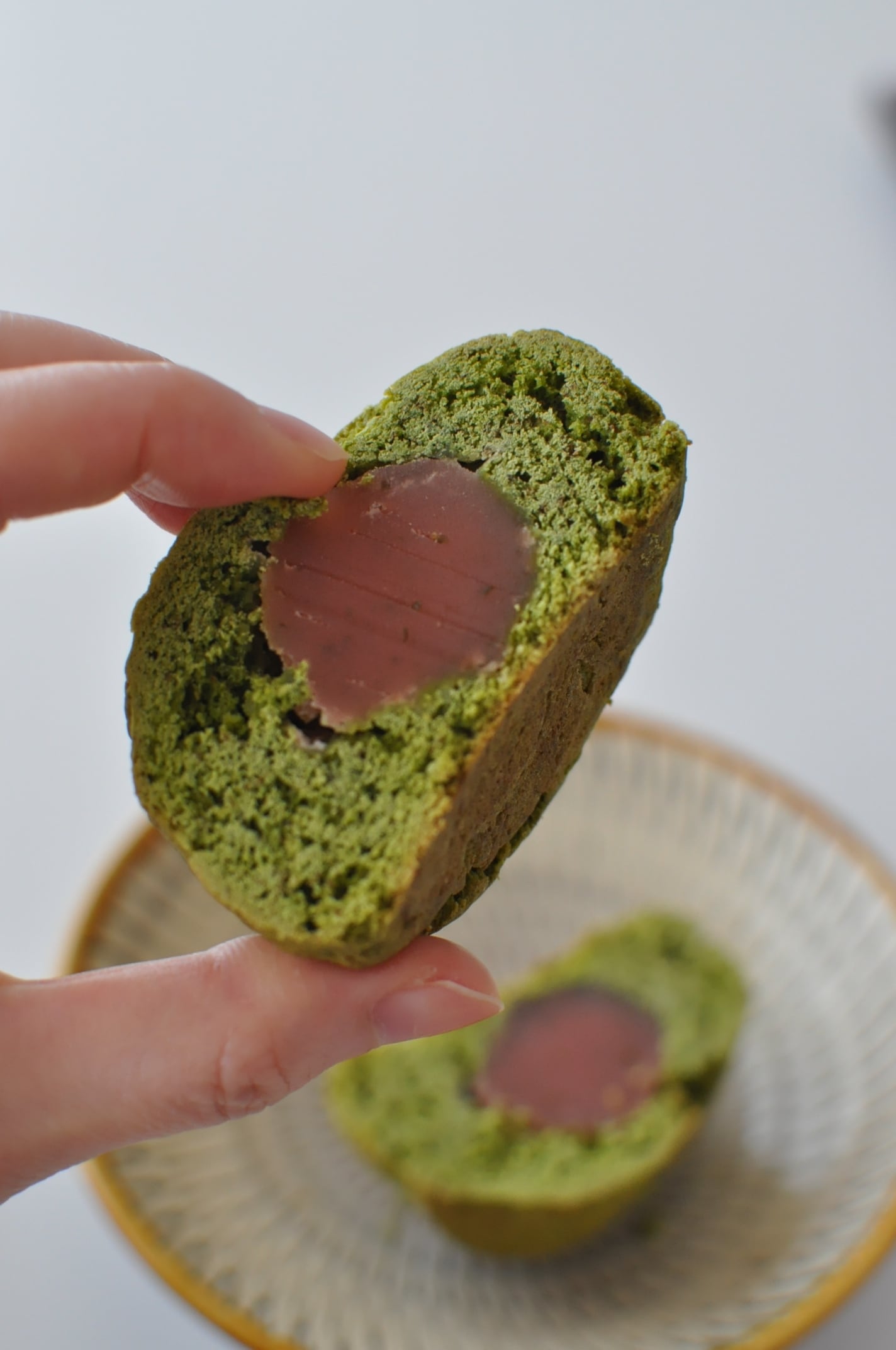 抹茶のスコーン生地に桜餡が包まれています。